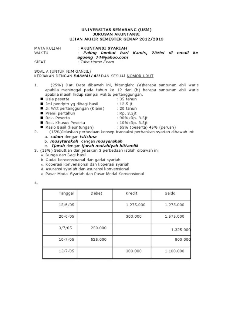 Soal Uas Akuntansi Syariah - Soal Ukk Jurusan Perbankan Syariah Ps Tp 2020 2021 Indo Smart School : Kumpulan soal k13 ini kami khususkan untuk jenjang sma.